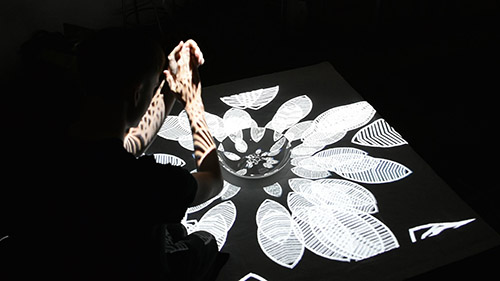 The audio-visual aspect of the instillation was implemented within a Processing sketch. The contents of the sketch were projected into the instillation space by means of a projection mapping application. The entry, offering and clapping interactions were implemented by means of Arduino managed sensors.
